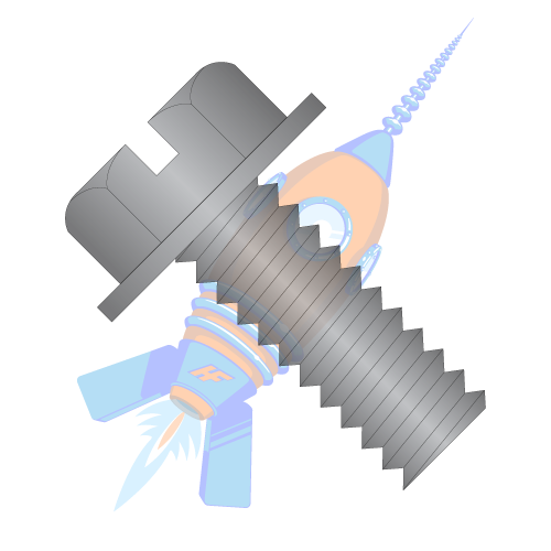 10-32 x 5/8 Slotted Indented Hex Washer Head Machine Screw Fully Threaded Black Oxide [Package of 5000]